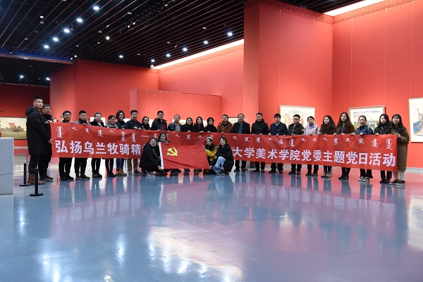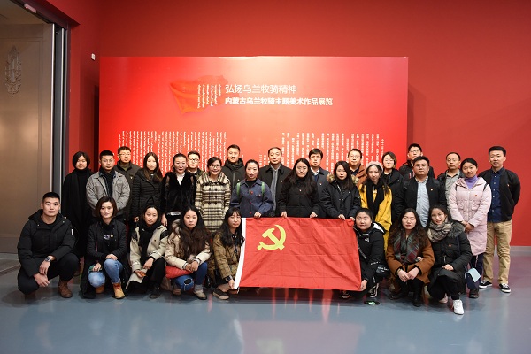 党委开展主题党日活动,组织部分教师党员、学生党员走进内蒙古美术馆(新馆)参观“内蒙古乌兰牧骑主题美术作品展览”。