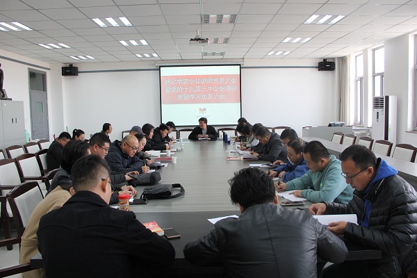 会议以"认真学习贯彻党的十九届三中全会精神”为主题。会上,石钧副书记结合学院工作实际,提出学习贯彻党的十九届三中全会精神的要求:一是提高政治站位,强化学习意识,充分认识三中全会精神的重大意义。二是要把学习习近平新时代中国特色社会主义思想、十九大精神、三中全会精神有机结合起来,三是要将学习精神与做好学院开学准备工作结合起来,确保上好开学第一堂课,确保学校安全稳定。