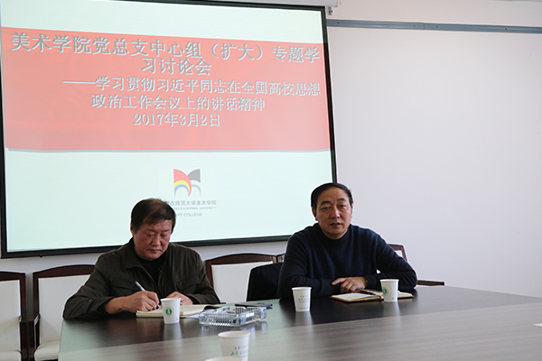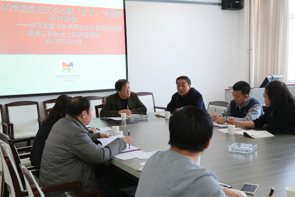 2017年3月2日下午,探花合集 党总支召开中心组专题学习讨论会,党总支副书记石钧教授主持会议,乌力吉院长、王耀中副院长及总支中心组成员、各支部委员参加了专题学习讨论会。 会议先后传达了全国、自治区高校思想政治工作会议精神,重点学习了习近平总书记在全国高校思想政治工作会议上的讲话精神,并就全面动员党员领导干部和教师结合实际教学工作做好大学生思想政治教育、成长成才辅导工作等进行了研讨。