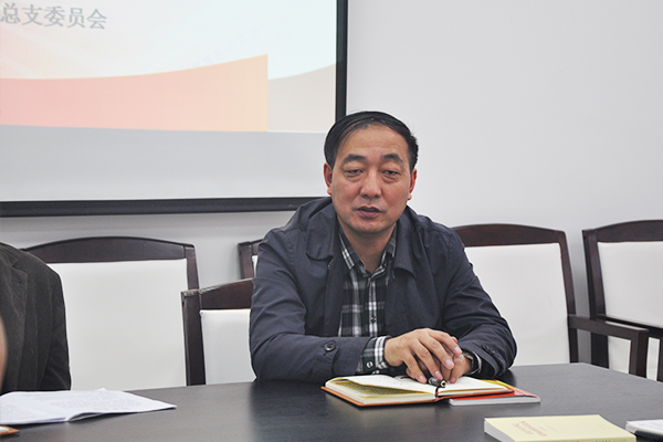 党总支副书记石钧首先对学校"两学一做"学习教育座谈会精神及校党委有关在全校党员中开展"学党章党规、学系列讲话,做合格党员"学习教育的文件。并对“两学一做”的学习目的意义、总体要求、学习教育内容 和主要措施进行了解读。