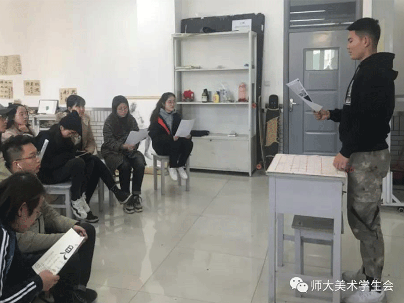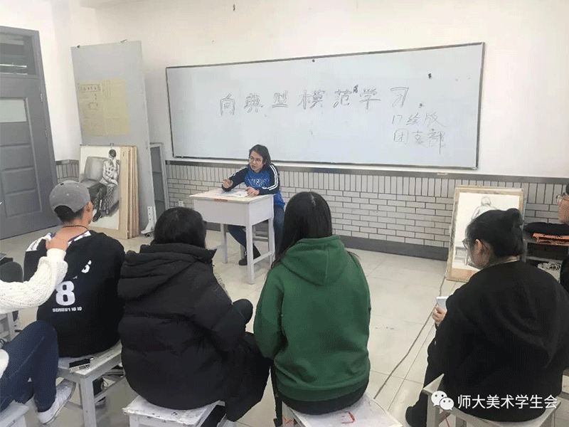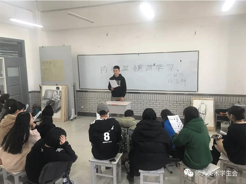 为深入推进“两学一做”学习精神常态化制度化,贯彻落实习近平总书记新时代社会主义核心思想。2018年11月29日,17级绘画版画班于美院楼开展“向典型模范学习”的故事宣讲活动。