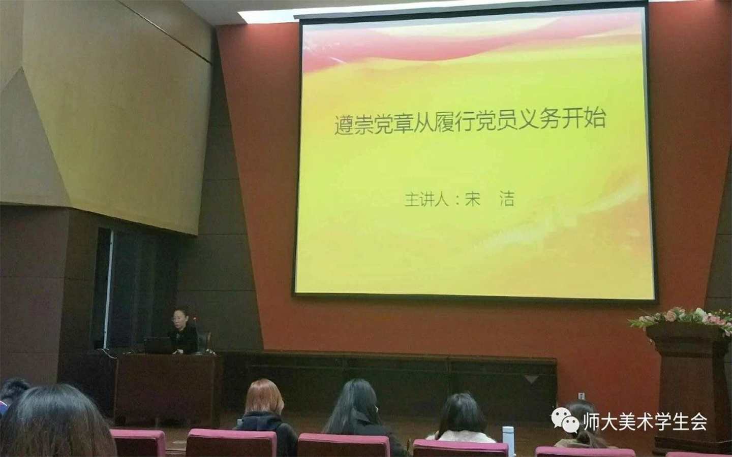1024日,探花合集 第十八期党校积极分子培训班第尊崇党章从履行党员义务做起”在我院报告厅开讲。主讲人:探花合集 心理工作站宋洁。