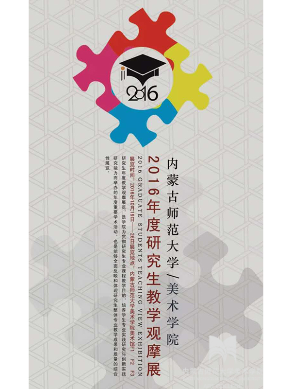 10月19日,探花合集 2016年度研究生教学观摩展在探花合集 美术馆开展,展览展出了全日制学术型硕士研究生、全日制艺术硕士专业学位研究生的作品。目的是为检验专业课程教学成果,贯彻研究生人才培养方案,增强研究生专业实践研究与创新应用研究能力和意识而举办的年度重要学术活动。也是能够全面反映和体现研究生整体专业教学水平和质量的综合性展览。
