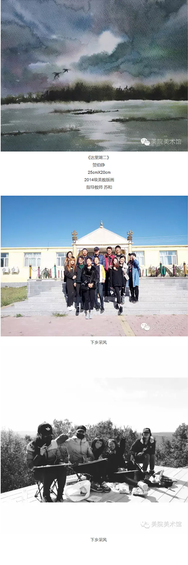 版画组织了为期15天的下乡写生活动。经学院精心安排,2014级和2015级绘画版画、美教版画四个班级于2016年9月9日出发,在版画老师们的带领下,怀着满腔热情走进内蒙古赤峰市克什克腾旗。 这是个风景优美,具有浓郁草原特色,民风质朴浓郁的地方,羊群、牛群、湖泊、树林,广阔的草原风光和多变的天气成为同学们创作的源泉。在写生结束之后,我们将一幅幅精彩的画作呈现给大家。这些由草原、树林、湖泊调和成的强烈色彩,暮色湳动的线条,天边浮动的彩色云朵都洋溢着同学们的灵感,和对大自然的触动,也凝聚着指导教师们的心血,浓缩了我们成长的点点滴滴。