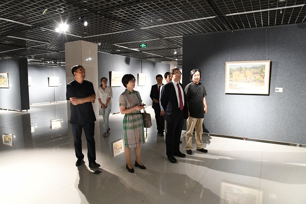 韩国世翰大学校长李升勋一行参观我院游心牧色-张项军写生作品展、中国古代经典艺术作品展。