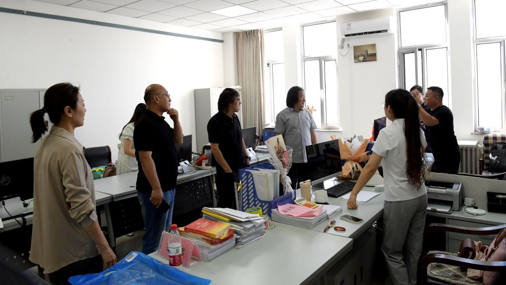 王耀中一行首先来到办公室区域,与各部门办公室的工作人员亲切交流。他详细了解了办公室人员的工作安排、档案整理以及信息反馈等情况,对于人员到岗情况表示满意。他强调了办公室在协调各项工作中的重要作用,鼓励办公室同志要继续保持高效的工作状态,为学院的发展贡献力量。