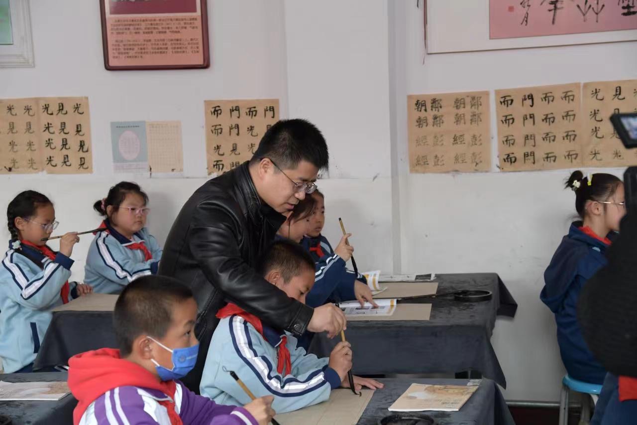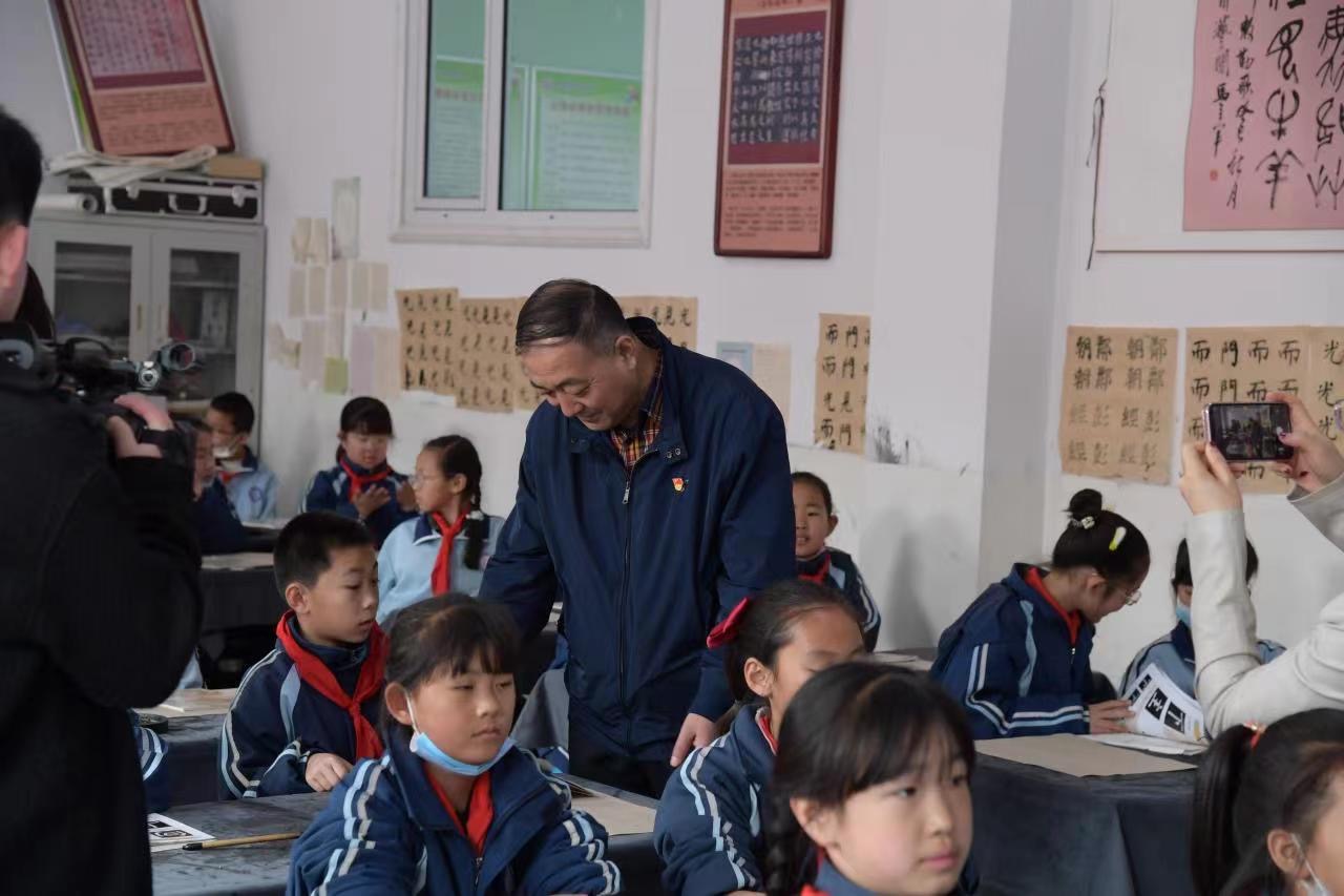 和林五小长期以来注重美育教育,促进学生全面发展,着力打造书法特色品牌学校,曾获得全国书法教育实验校、内蒙古书法教育示范校、全国写字实验学校等多项殊荣。党员教师走进学校书法教室、美术教室,观看学生习字、绘画,不时与师生交流,并现场辅导学生书写、绘画。