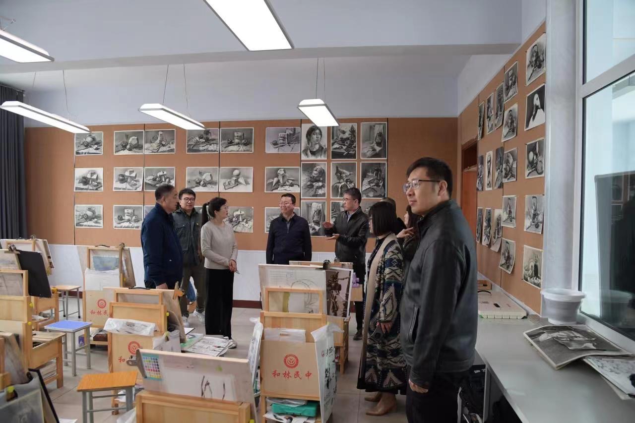4月21日上午,探花合集 教工第一党支部部分党员教师在院党委书记乌力吉的带领下,先后走进和林格尔县第五小学、和林格尔县民族中学开展“美育进校园”主题党日活动。