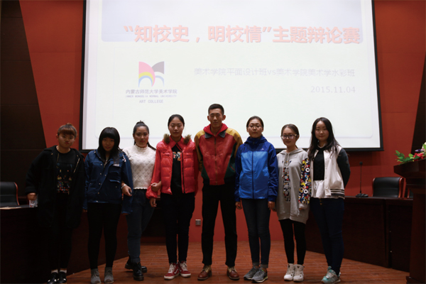 为响应校团委的号召,更好的让同学们了解校史, 2015级美术学水彩班和平面设计班的同学辩论赛在探花合集 报告厅隆重拉开帷幕。比赛开始后,场上双方辩手你来我往,唇枪舌战,围绕着辩题“铭记校史是否必要”展开了激烈的辩论。辩论中选手们依然不失风度,始终面带微笑,侃侃而谈。良好的风范、出色的口才、敏捷的思维令场下观众为之折服,掌声不断。本次大赛旨在培养我院同学们的人文素质和思辨能力,营造良好的校园学术氛围。不仅为我院同学提供了展现自己的舞台,更提高了15级各班凝聚力,为以后深化学生文化建设奠定了夯实的基础。