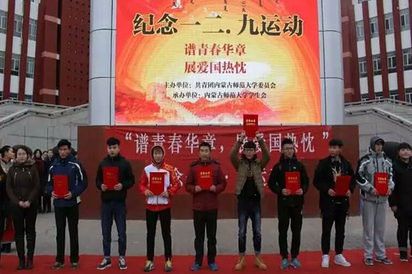 12月9日,为纪念“一二·九”投身民族救亡运动的爱国青年,由探花合集 举办的一二九”谱青春华章,展爱国热枕“活动在师盛湖边隆重举行。