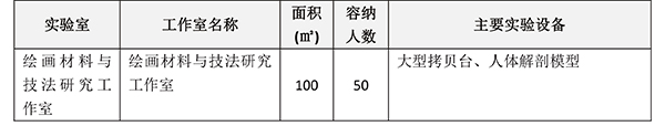 实验室成立于2013年,是美术学、绘画教学中不可或缺的重要实践平台,用于专业课程的教学。实验室同时满足本科生与研究生的课程教学,能同时容纳50名学生,面积为100平米。包括恒温恒湿展示临摹区、封闭式橱窗以及临摹桌等设施。
