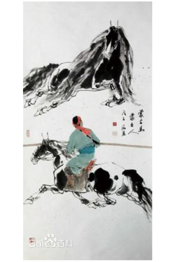 2005年,国画《苏尼特牧马人》,《伯乐相马图》被中央党校收藏。