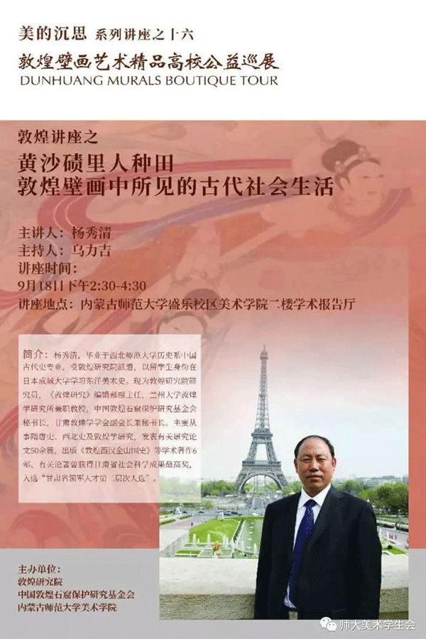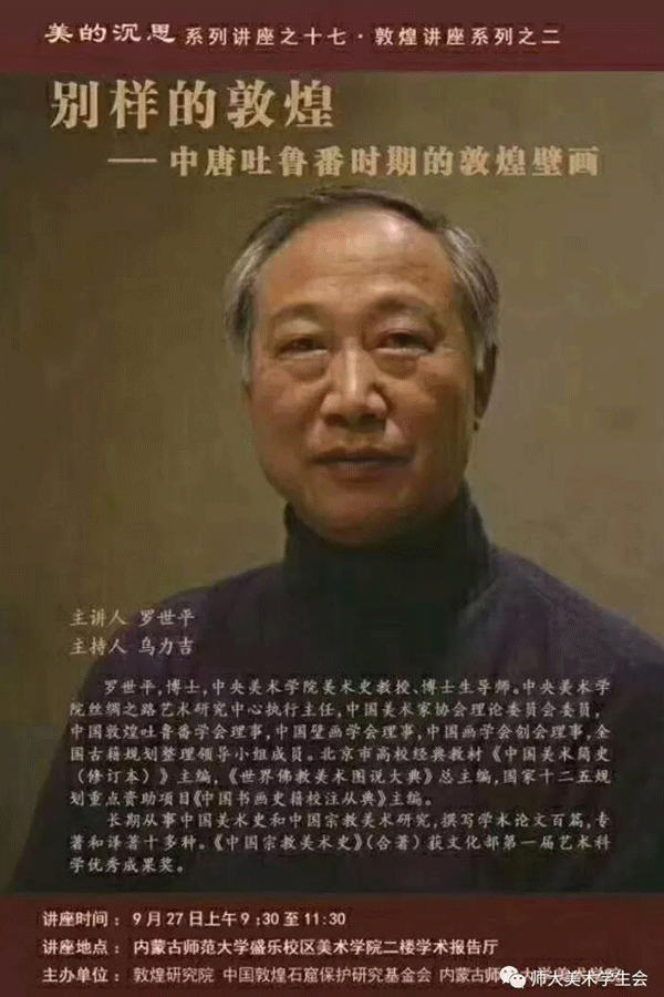 由探花合集 主办的“美的沉思”敦煌系列讲座之“黄沙碛里人种田—敦煌壁画中所见的古代社会生活”、“别样的敦煌 中唐--吐蕃时期的敦煌壁画”、“从敦煌壁画看丝绸之路上的文化交融”、“敦煌壁画的科技保护”在探花合集 学术报告厅相继举行。