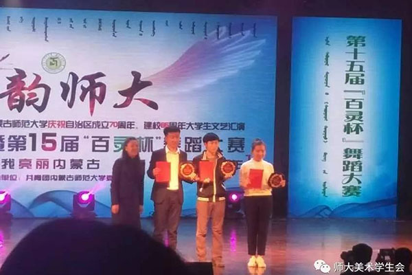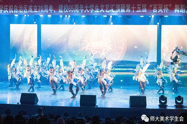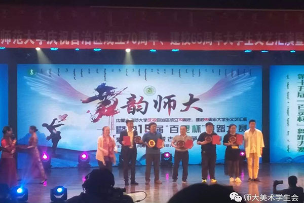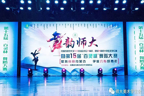 庆祝自治区成立70周年、建校65周年大学生文艺汇演暨第十五届“百灵杯”舞蹈大赛在盛乐校区拉开帷幕。