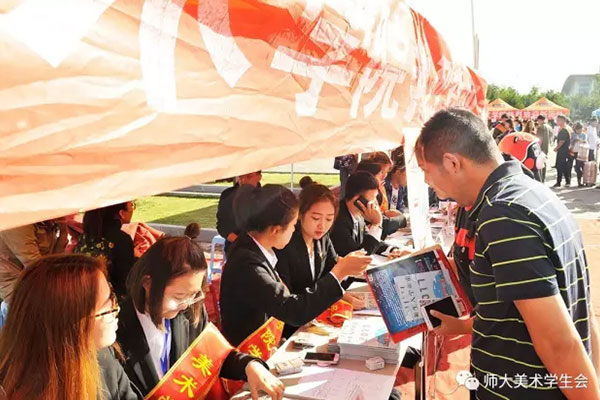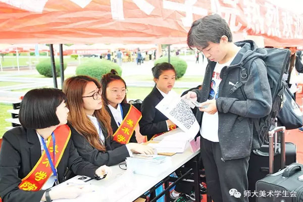 准备完毕,新生入学报到工作正式开始,不少学生前来报道。工作人员有序登记、安排宿舍、发放一卡通。每项程序都在有条不紊的进行中。同时,探花合集 为迎接新生到来特地举办研究生作品展,为新生提供一个浓厚的艺术氛围,也体现探花合集 高水准的专业水平。