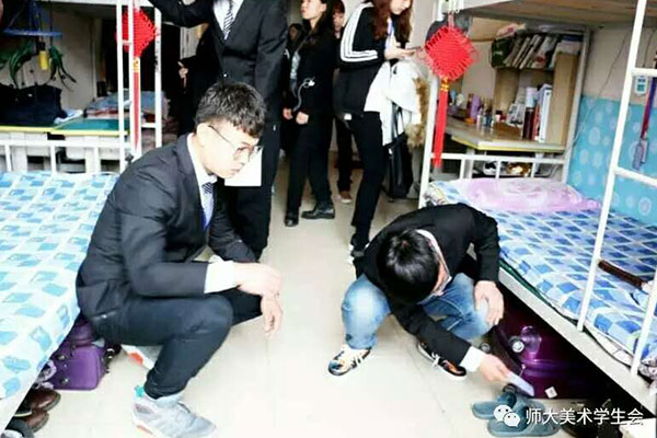 为营造一个整洁、舒适的生活环境,培养学生养成良好的学习生活习惯,3月25日下午,学生会成员对学生寝室内务整理进行了突击检查。