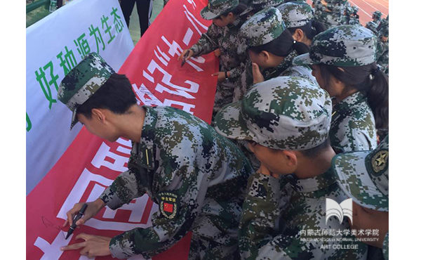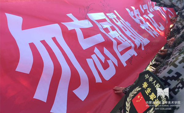 师生们怀着一股哀思、一腔热血举行了“纪念九一八事变”大型爱国主义签名活动,将青年一代的爱国之情、报国之志写在横幅之上。全院师生以及军训教官都踊跃前来签名,不久,横幅就布满了密密麻麻的姓名,这是中国人对日本帝国主义罪行的控诉、对国耻国难的警醒。