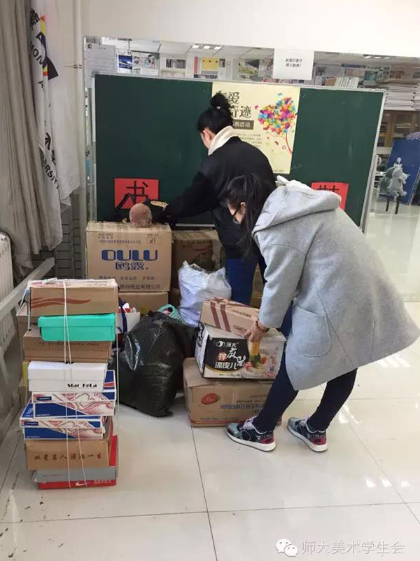 全体师生的支持下发起“有爱有奇迹”的小型募捐活动。活动当天,同学们把自己清理干净的鞋子和衣服及时地送到了募捐活动中心,还买了新的笔和书本,细心的女同学们在书籍上为那些贫困山区的孩子写了一段段鼓励的话,募捐活动持续了两天,看着伸出援手的同学们越来越多,小编的心里是格外的暖!