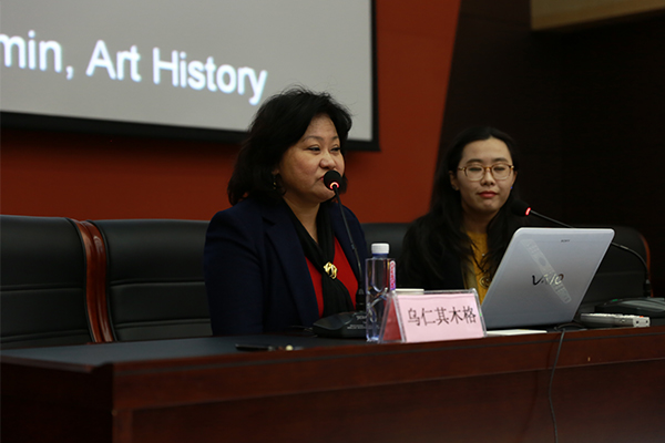 乌仁其木格,美国加洲大学艺术史博士,亚洲艺术研究中心教授。 3月24日上午,美国加州大学艺术史博士亚洲艺术研究中心教授乌仁其木格老师在探花合集 报告厅以《中亚的传统和现代艺术在蒙古艺术的体现》为主题进行了学术讲座,讲座由院长乌力吉主持。 她讲述了2015年的威尼斯双年展,双年展中蒙古艺术首次参展,双年展上具有蒙古特色的装置作品 ,讲述了蒙古国装置艺术和世界当代艺术的现状。以及中亚的传统艺术和当代艺术在蒙古艺术的体现。 乌仁其木格老师还和在场的师生就当代艺术进行了讨论和互动。