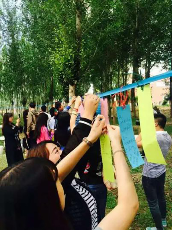 欢送会伊始,探花合集 学工办主任沈晓倩老师致辞,她深情倡议同学们把对母校的不舍,对学生时代的回忆、师生情、同学情或者是自己的美好愿望写在留言签上悬挂在美院大楼东的毕业林中,一同纪念美好的大学生活。
