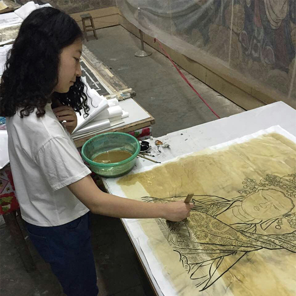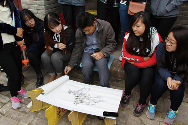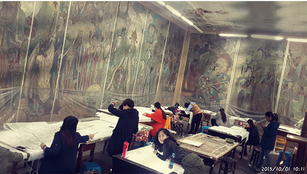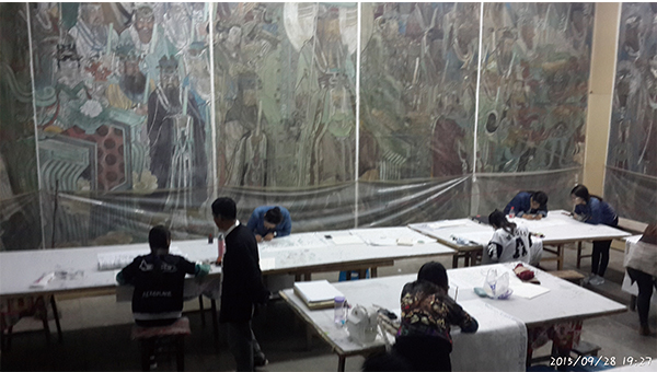 于次日下午到达了山西芮城永乐宫写生基地,永乐宫坐落于秦、晋、豫三省交界的山西芮城县。这里历史悠久、人杰地灵,是华夏文明的重要发源地。八仙之一的吕洞宾就是出去在这里。永乐宫就是纪念吕洞宾而修建的一座道教宫观。原名大纯阳万寿宫,是我国现存最大,保存最为完整的道教宫观。在这里的学习过程中,我们分成两个阶段:首先,我们参观学习了永乐宫保存的最大的一副作品_《朝元图》,总面积400多平米,总长97米,高4.26米,画中八位主像身高3米,最低的也有1.9米,均超过了真人的高度,画面构图宏伟,气势磅礴,笔法生动传神,设色富丽堂皇,对我们国画人物画的学习有很大帮助;之后,我们也对永乐宫周围的景色进后行了室外写生。为时十一天的写生课程就圆满结束。