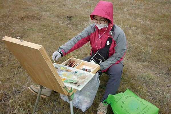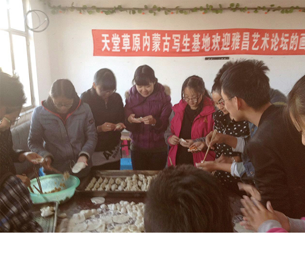 恨的是大克旗变化多端的天气是多么不留情面,中午还艳阳高照,下午就寒风凛冽。 这样的极端实在抵挡不住。虽然这样,每天我们个个都武装的严严实实,还是一如既往的上山画画,不论雨雪风霜,这种精神值得鼓励,为大家点个赞,更为我们敬爱的老师点个赞。不管老师写生多么晚回来都会给我们一一点评画,指出画中得优点及不足的地方。对于每个人的色彩风景,在大家的努力和老师的指导下都有很大的收获。在写生之余,想必和大家最开心的事就是在一起等待美味可口的饭菜,看到大家狼吞虎咽的吃着,感觉大家在一起真好。