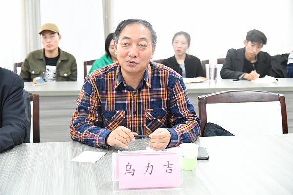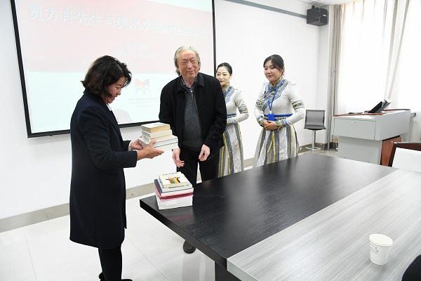 10月21日上午,国家一级美术师、理论家、美术评论家贾方舟先生在学院会议室与我院师生座谈交流,畅谈艺术人生、提升艺术境界。我院党委书记、博士生导师乌力吉主持座谈会。