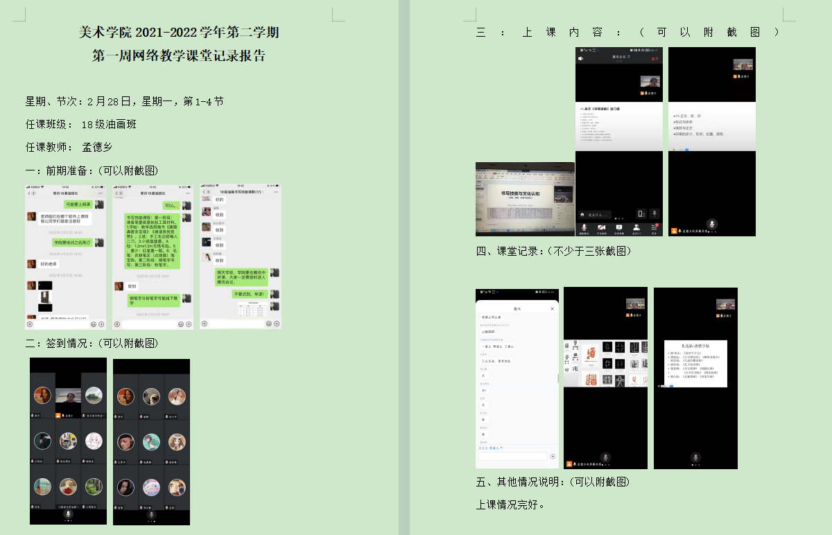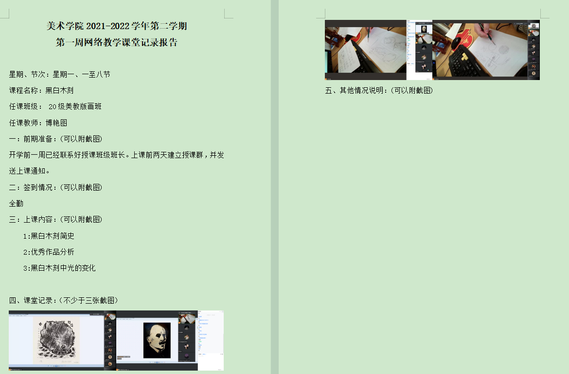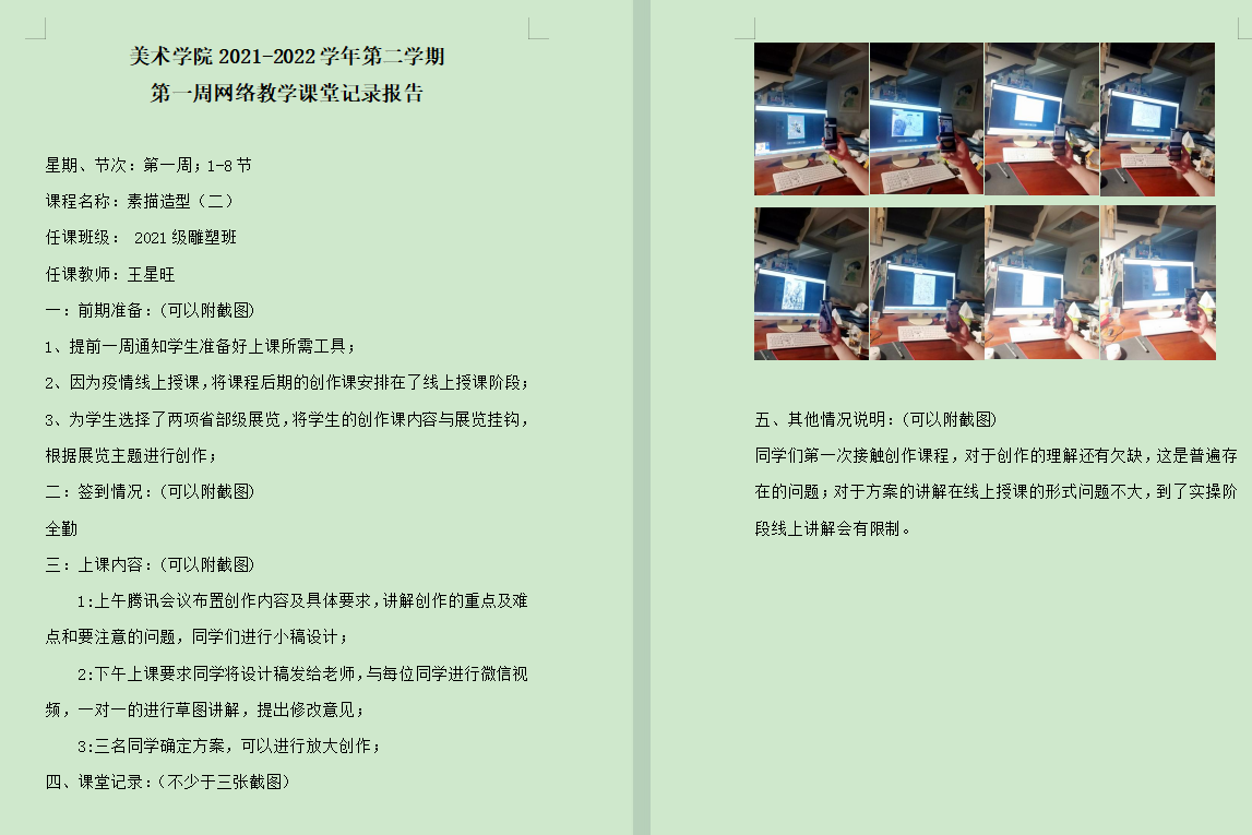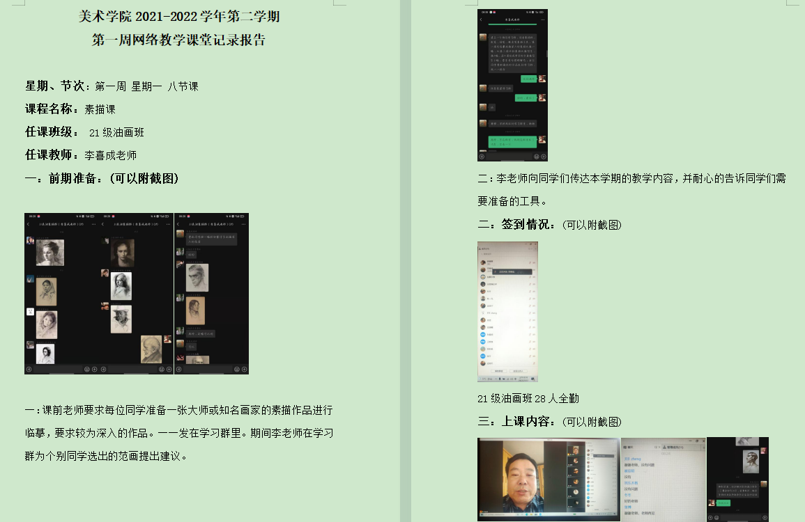 2022春季学期教学安排方案》,2月28日我院在线上如期开展教学工作。学院在开学前通过召开线上全体教职工大会安排教学事宜,并要求任课教师积极参加学校“内师在线”教学平台线上培训以及通过微信沟通等方式,做了充分的开学准备工作。