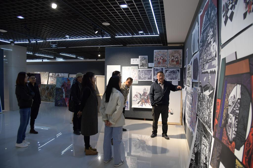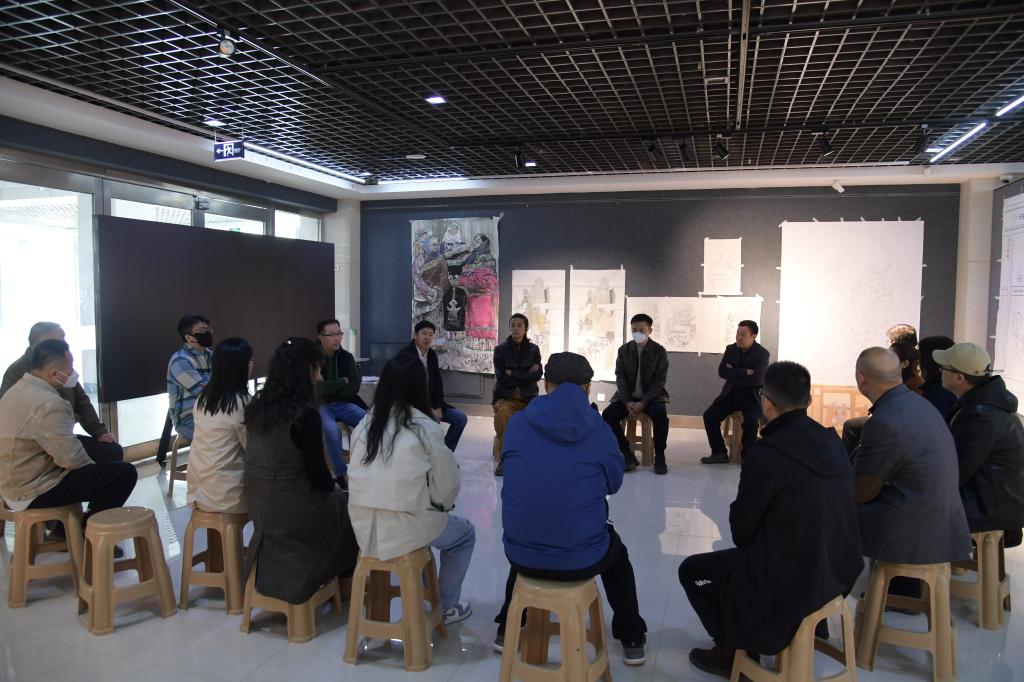 在观摩中,学院领导在第一次集中观摩的基础上对作品的创作进度、具体构思、构图,作品表达的内在含义都作了深入细致的了解,并对部分学生的作品提出了指导性的修改意见。各位导师对每一件作品也给出了自己的见解,为提升作品的品质及层次提供了更多的可能性。