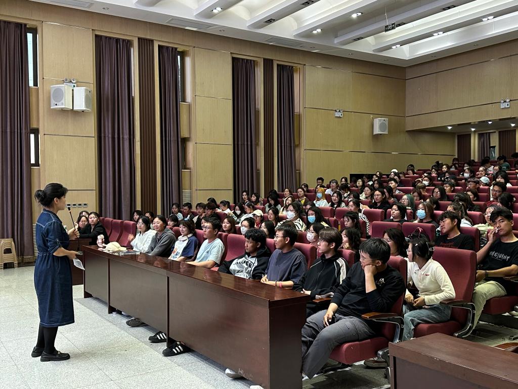 张晓霞以“锚定目标,全力以赴”为题引导大家进行思考,启发同学们要树立远大理想,敢想敢为,善作善成。在大学四年中尽早确定目标、制定规划并付诸实践,求真学问,练真本领,踔厉奋发启航新征程。随后,她从学习规划、职业规划、生活规划几个方面与各位同学进行了互动交流。