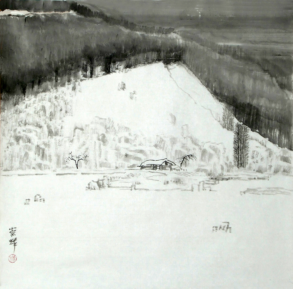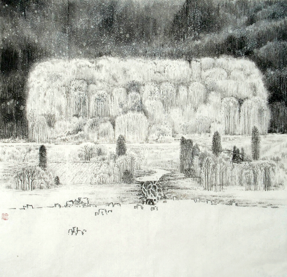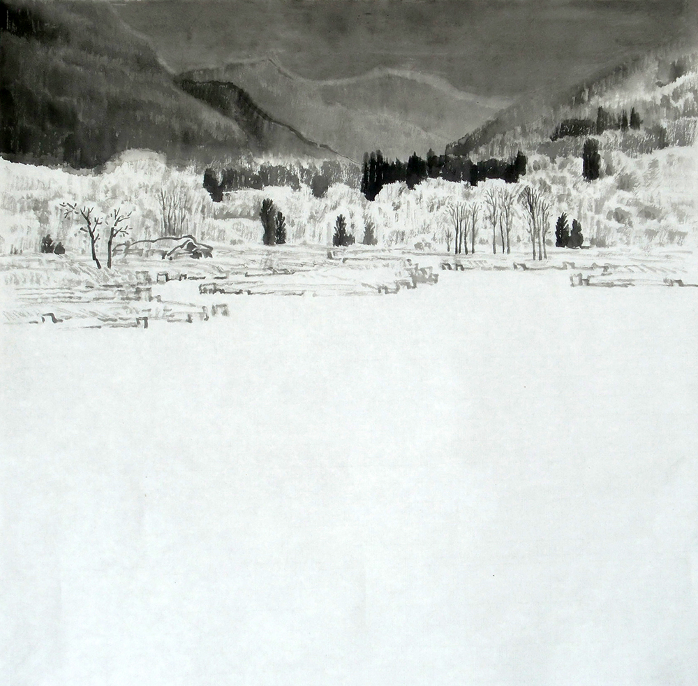 《敖鲁古雅-雪》 纸本水墨 60cm╳60cm 2009年