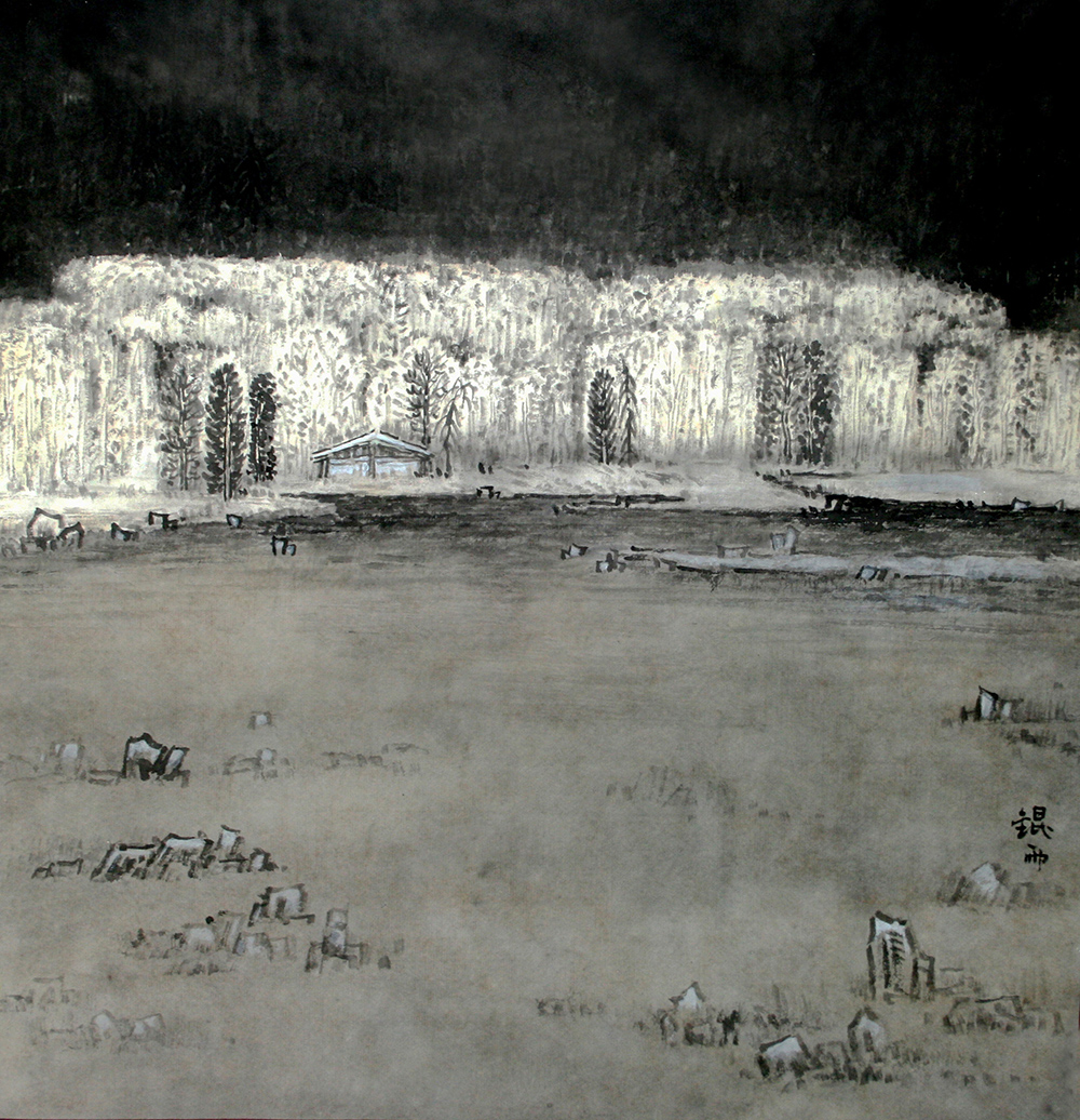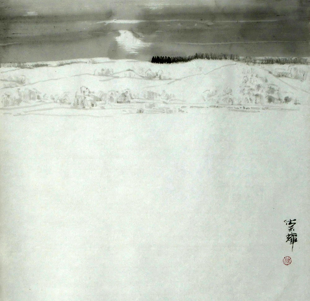 《月雪-五泉山》 纸本水墨 46cm╳46cm 2004年