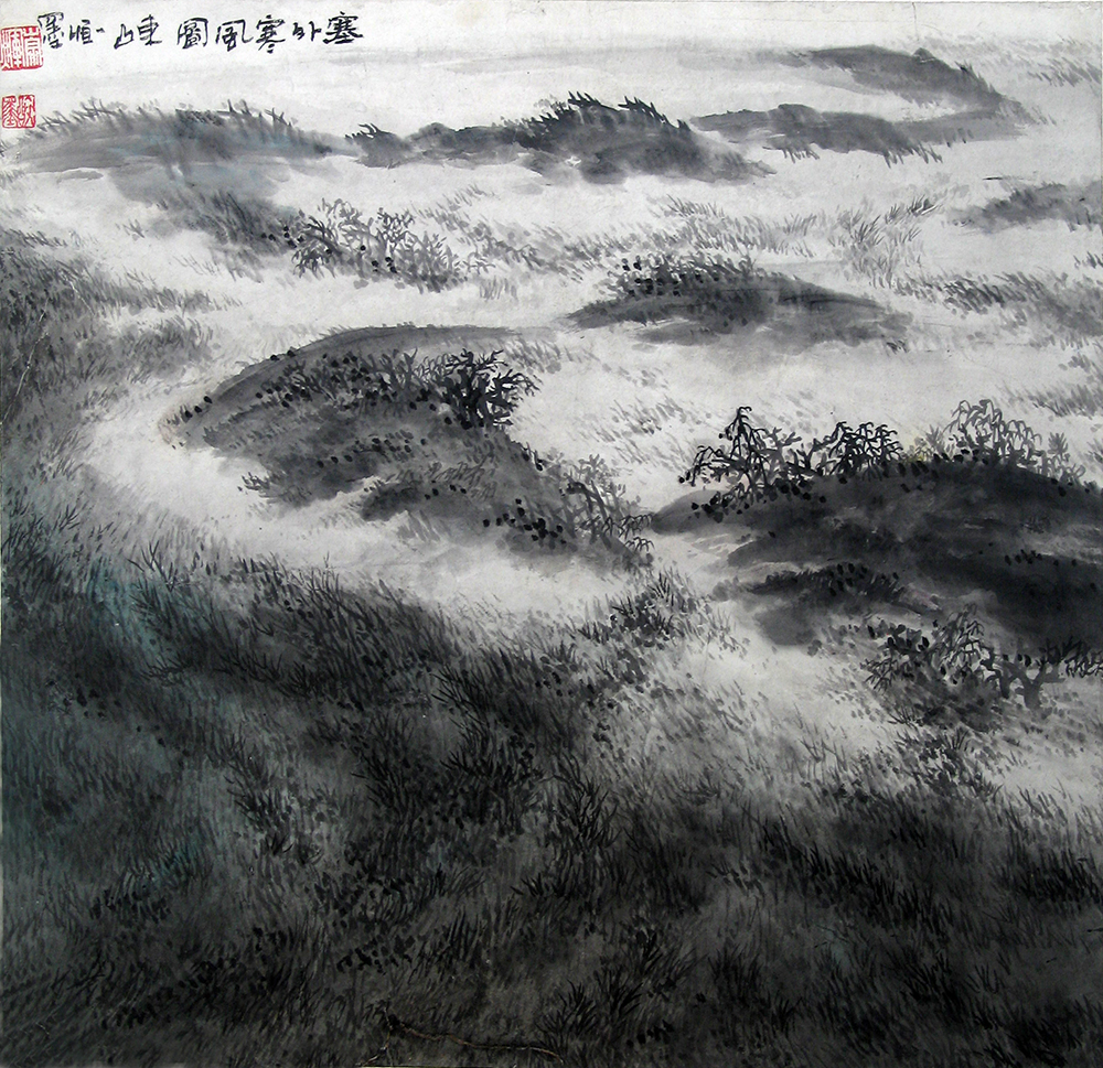 《塞外寒风图》 纸本水墨 62cm╳62cm 2001年