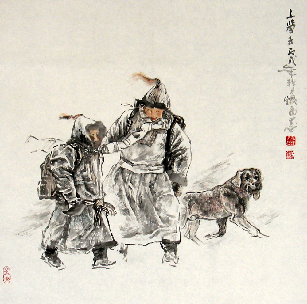 《上学去》 纸本水墨 60cm╳60cm 2006年