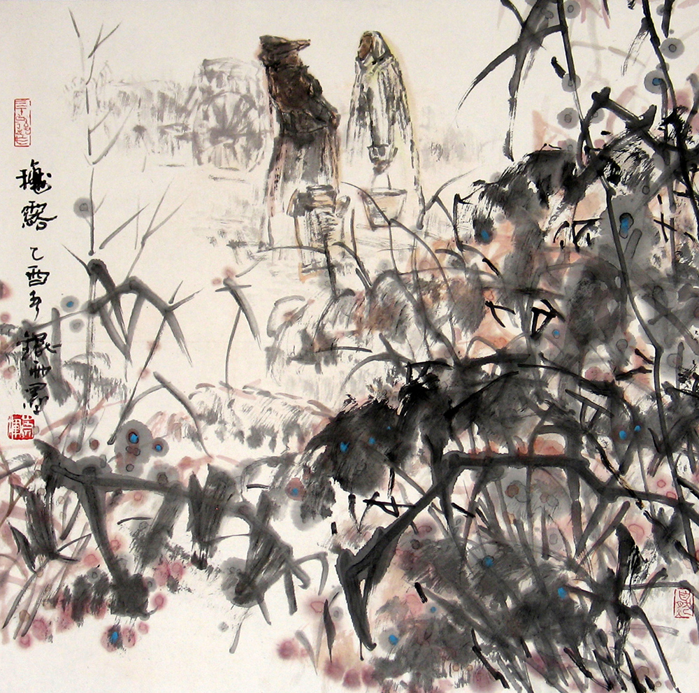 《秋露》 纸本彩墨 60cm╳60cm 2002年