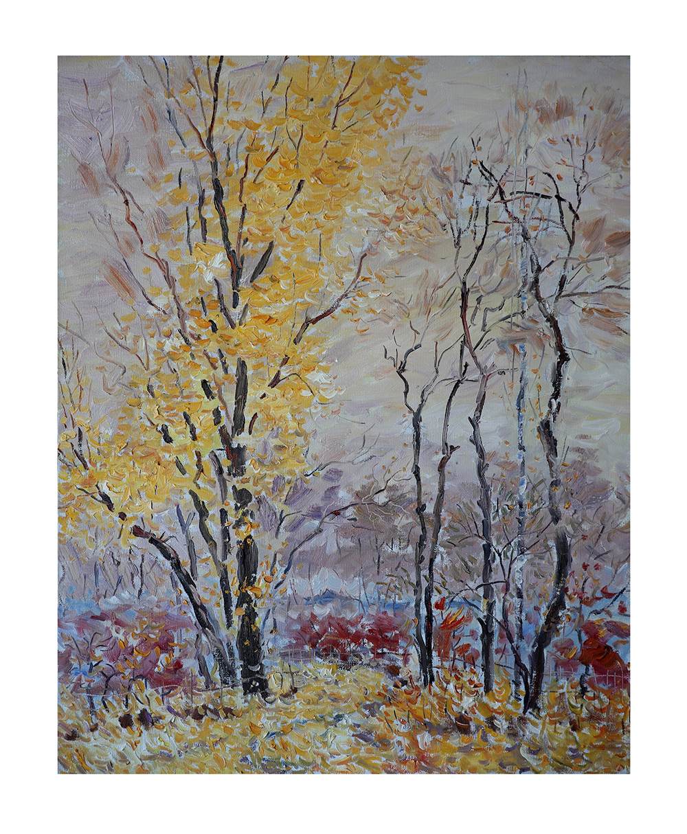 8.作品版画《寒冬秋叶》入选第十届全国美术作品展2004年。
