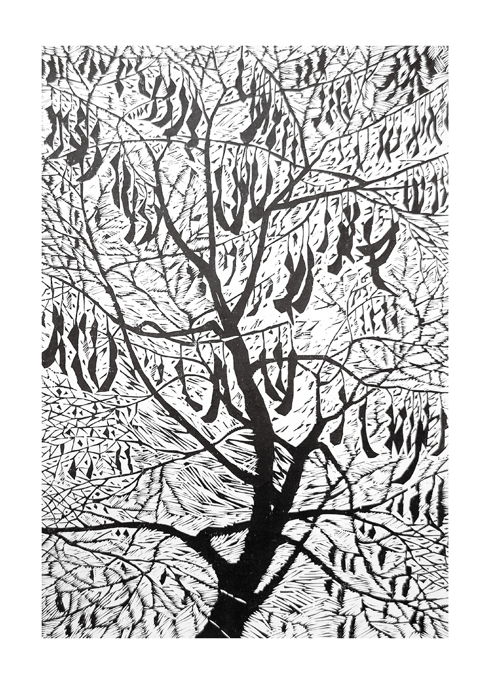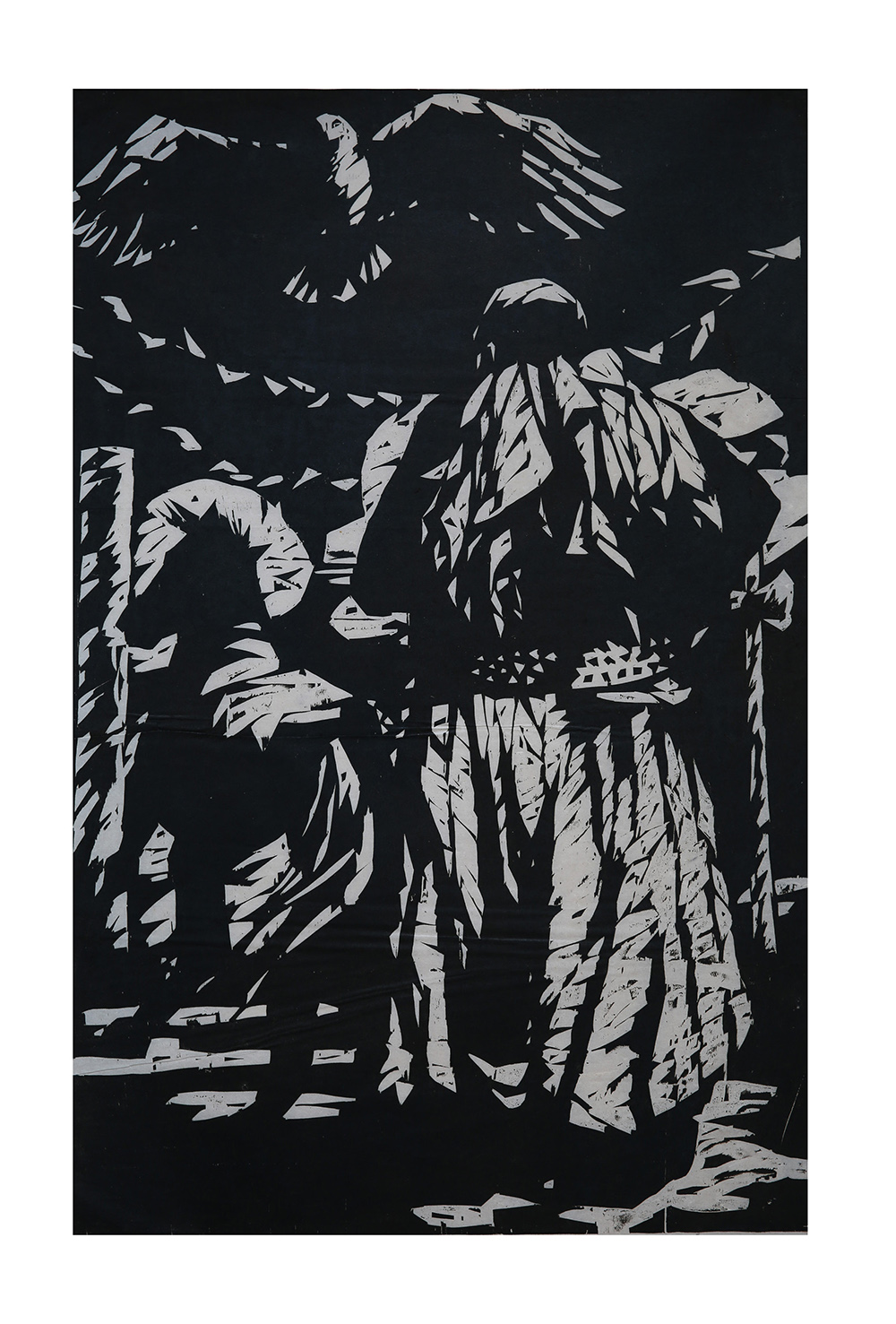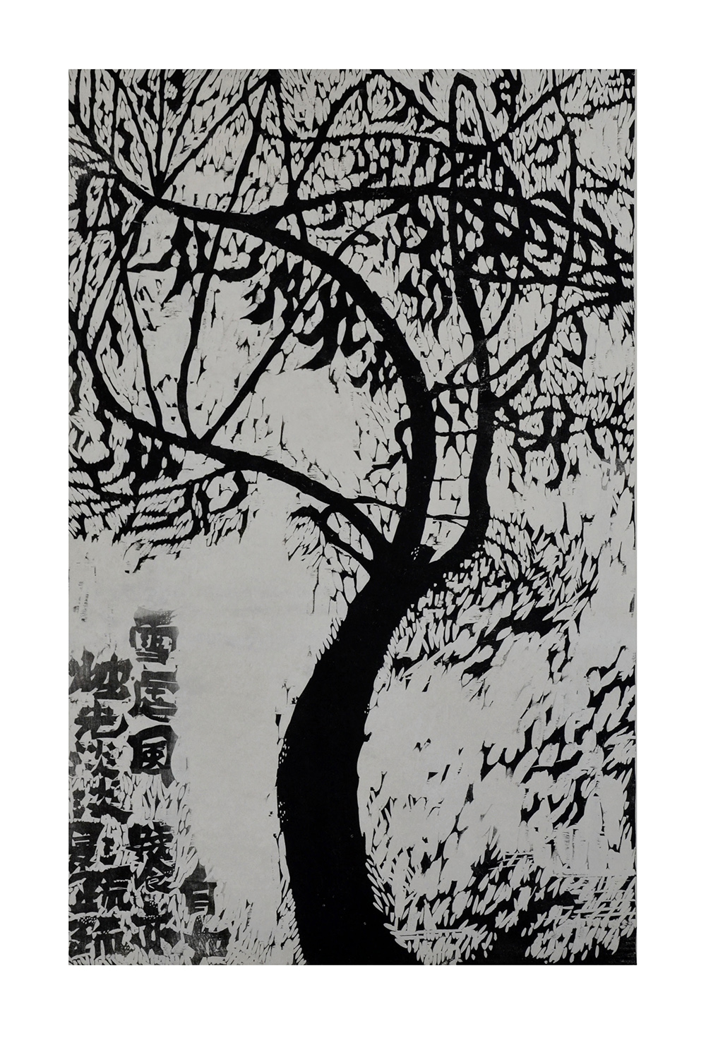 《摇曳的树》 黑白木刻 120cm×70cm 2016年