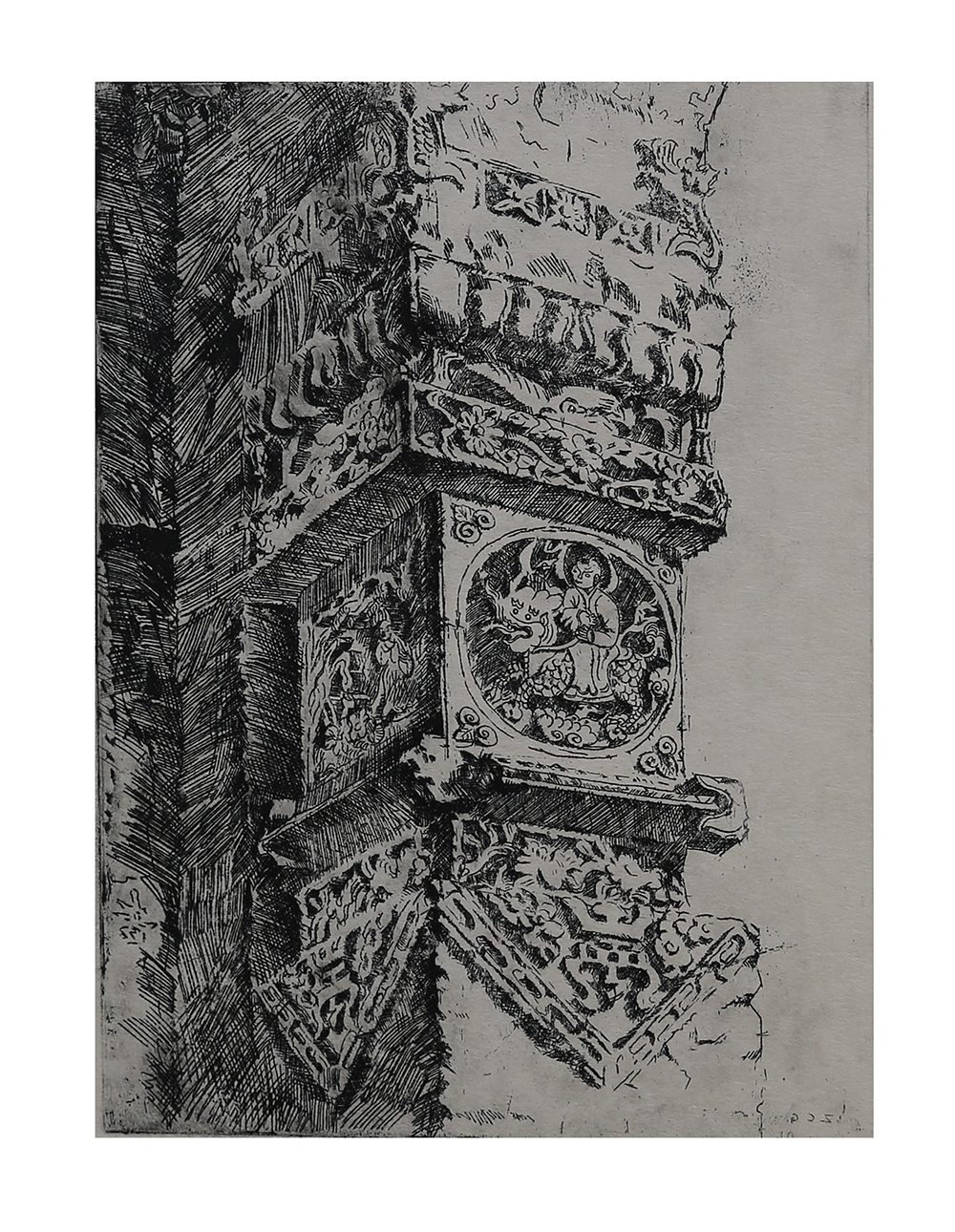 《有麒麟的柱子》 铜版 30cm×15cm 2002年