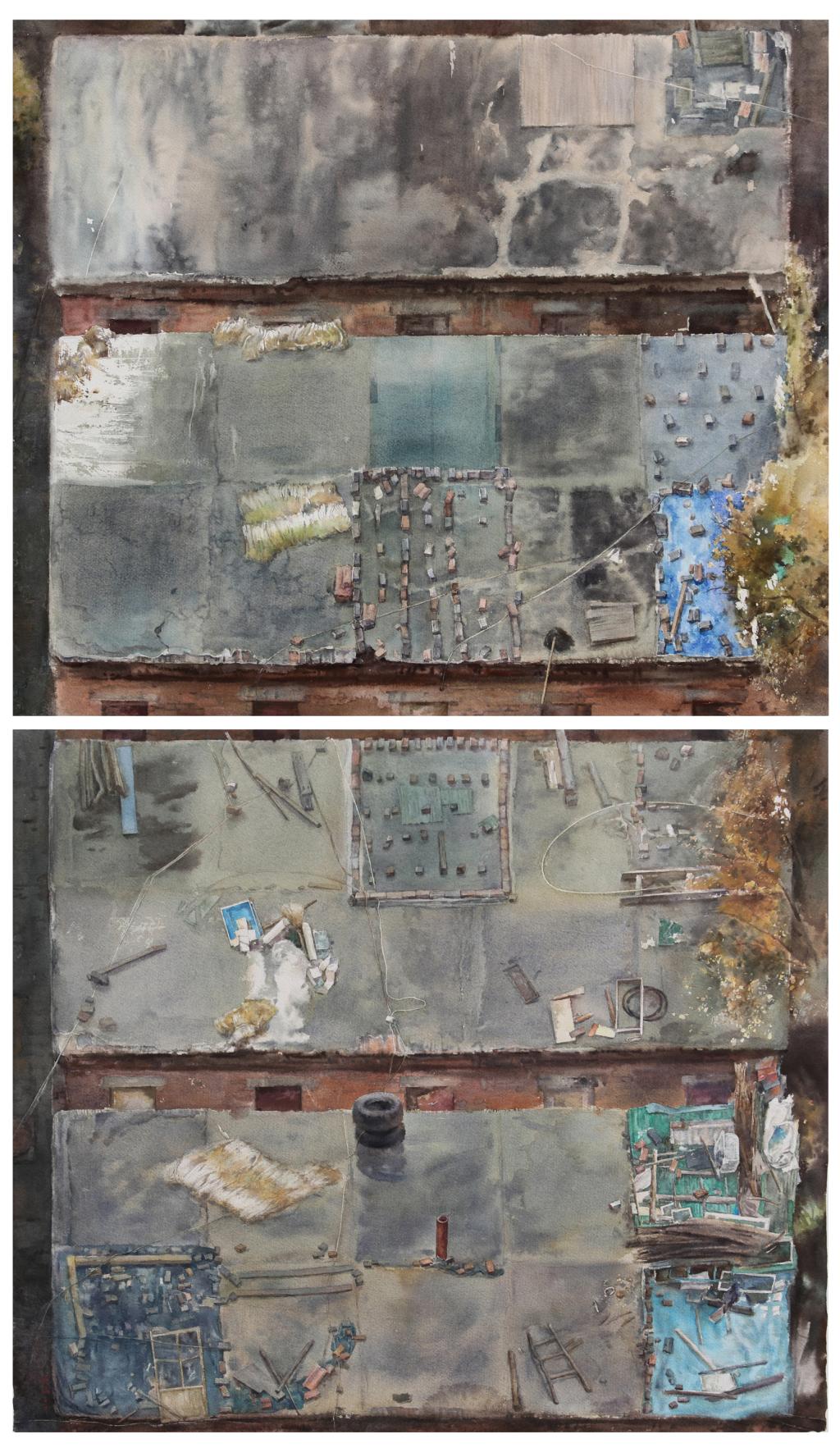 6.《屋顶之三》入选第二届全国小幅水彩画展,2011年。