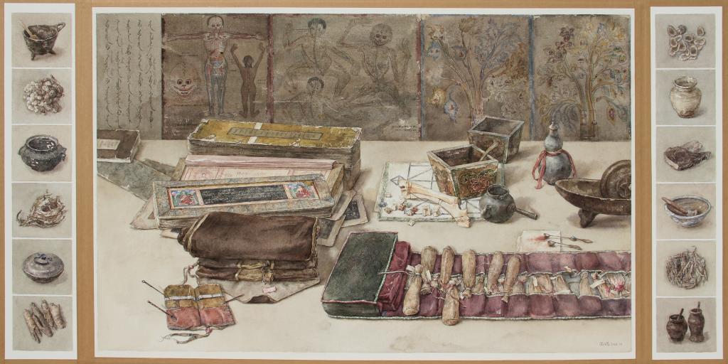 2.宣传部重大历史题材工程----水彩画《蒙医药》(2015—2017)。