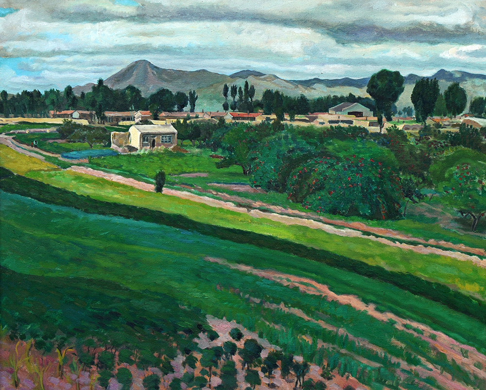 5.作品《农村风景》,2002年纪念毛泽东同志《在延安文艺座谈会上讲话发表60周年》全国美术作品展。